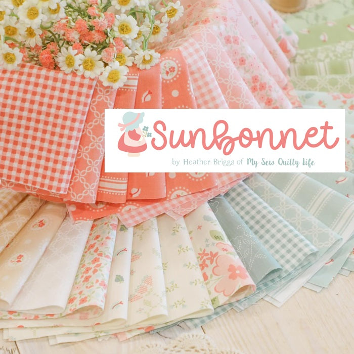 “My bonnet’s full of posies, and my cheeks are oh so rosy.” - Imagine a sunny stroll through the countryside, a lace-trimmed bonnet tied just so, and a basket brimming with freshly picked flowers. The Sunbonnet Collection is a heartfelt nod to those simpler, sweeter days, where time moved slower and every moment felt like a cherished memory. With soft shades of pink, blue, cream, and green, this collection is filled with delicate florals, dainty ginghams, and vintage-inspired prints—perfect for quilts, heirlooms, and keepsakes made with love.